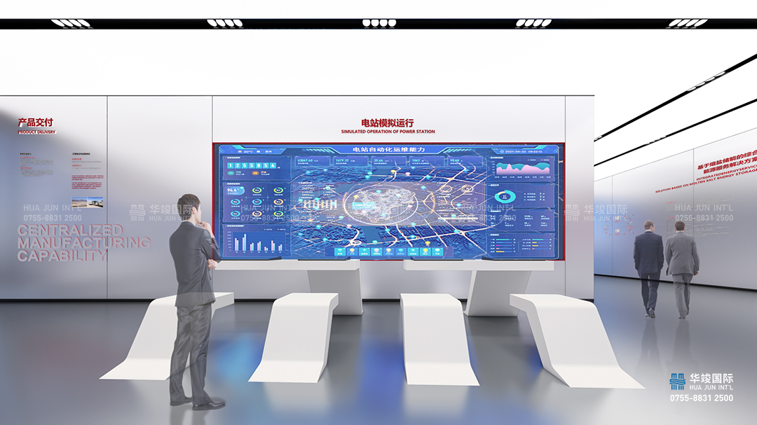 三折幕交互動態演繹,以其卓越的視聽融合技術,打造了一場科技與藝術完美融合的盛宴,在這場沉浸式的科普之旅中,多維展示可勝在多領域應用場景,定制化開發基于大規模寬溫域熔鹽儲能系統的解決方案。