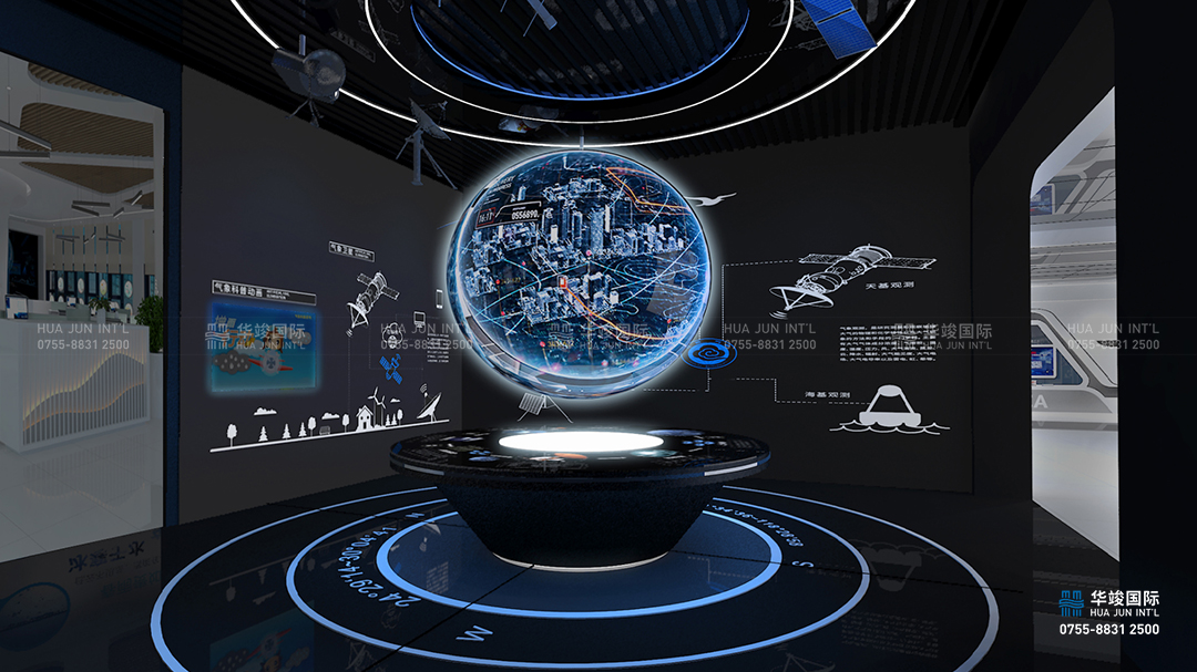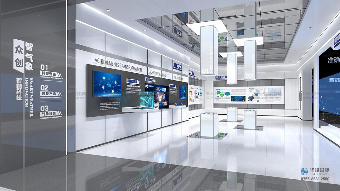 江西“智氣象”展廳項目由華竣國際執行整體設計施工,華竣國際以創新的智慧科技展廳設計理念,融合互聯網+思維,順應科技化趨勢,結合互動多媒體、數字影片、數字沙盤、虛擬現實等科技展項,打造震撼視覺的高品質科技展廳。