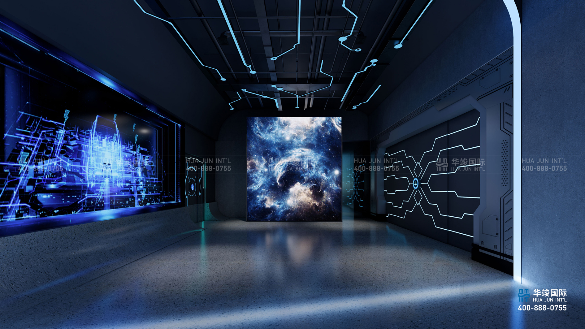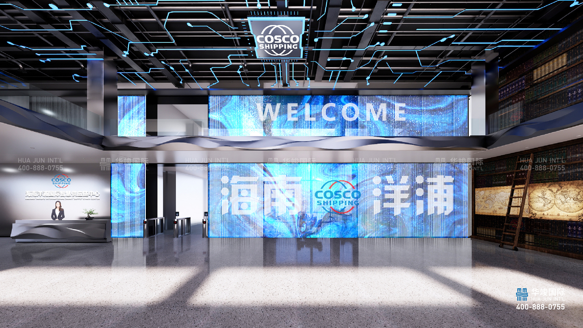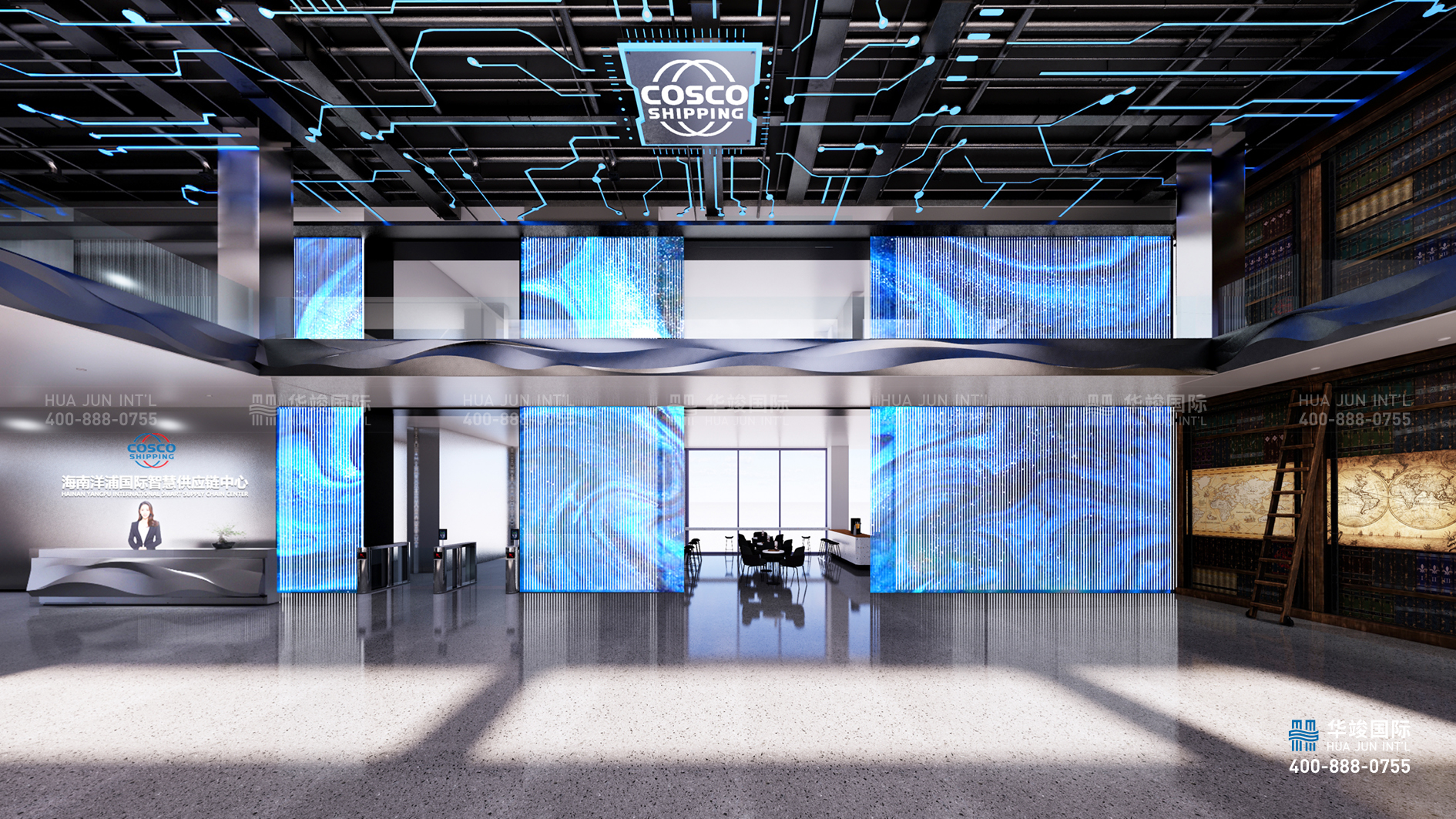 “串聯國家戰略與海南的科技通道”,塑造融海南印記、科技脈動與國際視野的沉浸式體驗空間,彰顯承運全球、貨通天下的企業特質,光影流轉間,靜謐且深邃無垠。