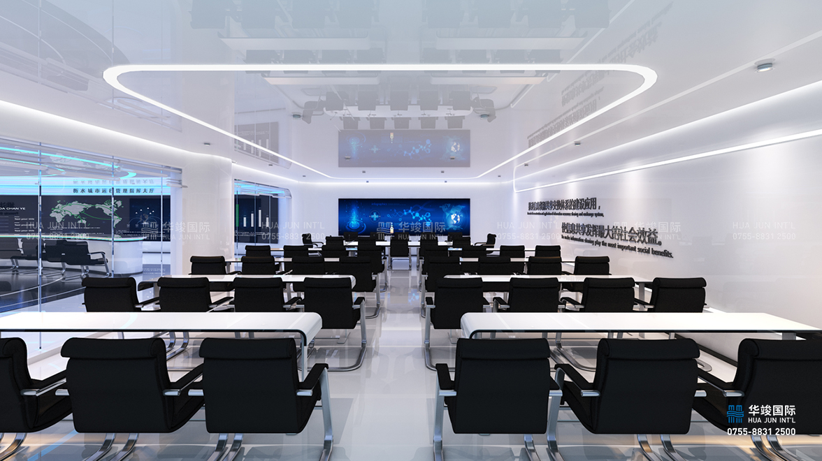 指揮大廳設(shè)置大屏幕展示,整體設(shè)計以流線型元素為主,更具前衛(wèi)感,科技感。主要用于城市運行管理,應(yīng)急指揮,領(lǐng)導(dǎo)觀摩,參觀演示,這里也是信息化建設(shè)成果展示的窗口。其設(shè)計最大程度利用現(xiàn)有空間,并結(jié)合智能展示設(shè)置操作臺,可供多人操控屏幕,指揮工作。