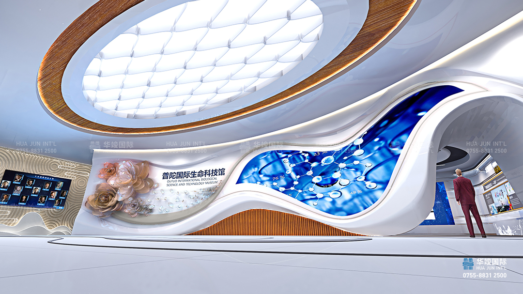 普陀國際生命科技館項目由華竣數創執行整體設計施工,華竣數創擁有頂級展館設計團隊和國際化的創新設計理念,融合互聯網+思維,順應科技化趨勢,打造全新智慧多媒體展廳。