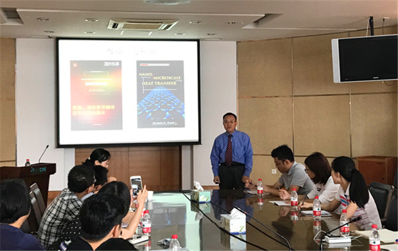 上午,張卓敏教授作了題為“Near-Field Thermal Radiation for Energy Conversion”的報(bào)告。報(bào)告中,他通過對遠(yuǎn)場熱輻射和近場熱輻射的模型展示和對比,使參會(huì)人員直觀地認(rèn)識(shí)到近場熱輻射能量轉(zhuǎn)換的優(yōu)勢。闡述了近場熱輻射能量轉(zhuǎn)換在熱光伏裝置、近場熱輻射能量發(fā)電和電致發(fā)光制冷的原理,通過仿真模擬以及實(shí)驗(yàn)手段展示了當(dāng)溫度不同的兩物體間距離逐漸減小至幾百納米時(shí),近場熱輻射能量密度會(huì)發(fā)生顯著提高,并大大提高能量轉(zhuǎn)換效率。最后,張卓敏教授對近場熱輻射能量轉(zhuǎn)換的未來應(yīng)用前景做了展望。報(bào)告會(huì)氣氛熱烈,與會(huì)人員與張卓敏教授就感興趣問題展開了熱烈的討論。
