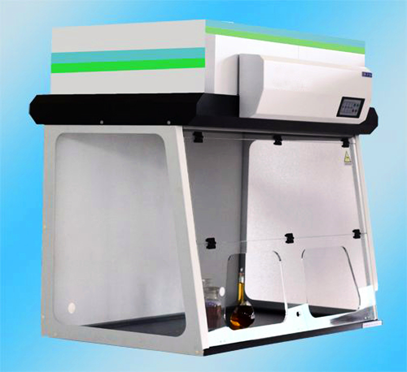 凈氣型通風柜無需外接管道,頂部自帶風機和過濾器。打開開關,風機運作使柜內形成負壓,保證化學品不會溢出。主體風向自下而上,使柜內空氣全部經過過濾器 過濾,潔凈的空氣從頂部排風口排出。一方面起到凈化柜內揮發出的化學品,另一方面實驗室內空氣進入柜內,同樣也可以凈化實驗室內空氣。安裝調試簡單方便, 節能環保,不消耗空調風,凈化實驗室內空氣,保護人員健康。